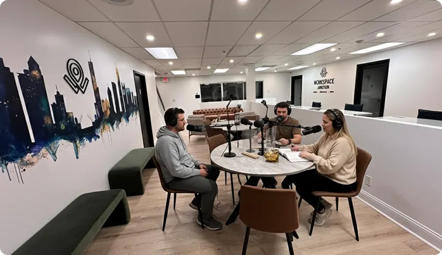 Unlock your creative potential at the Workspace Junction Podcast Studio—a professional, flexible, and fully equipped content space in Oakbrook Terrace, IL where podcasters, creators, and business leaders produce high-quality audio and video content.